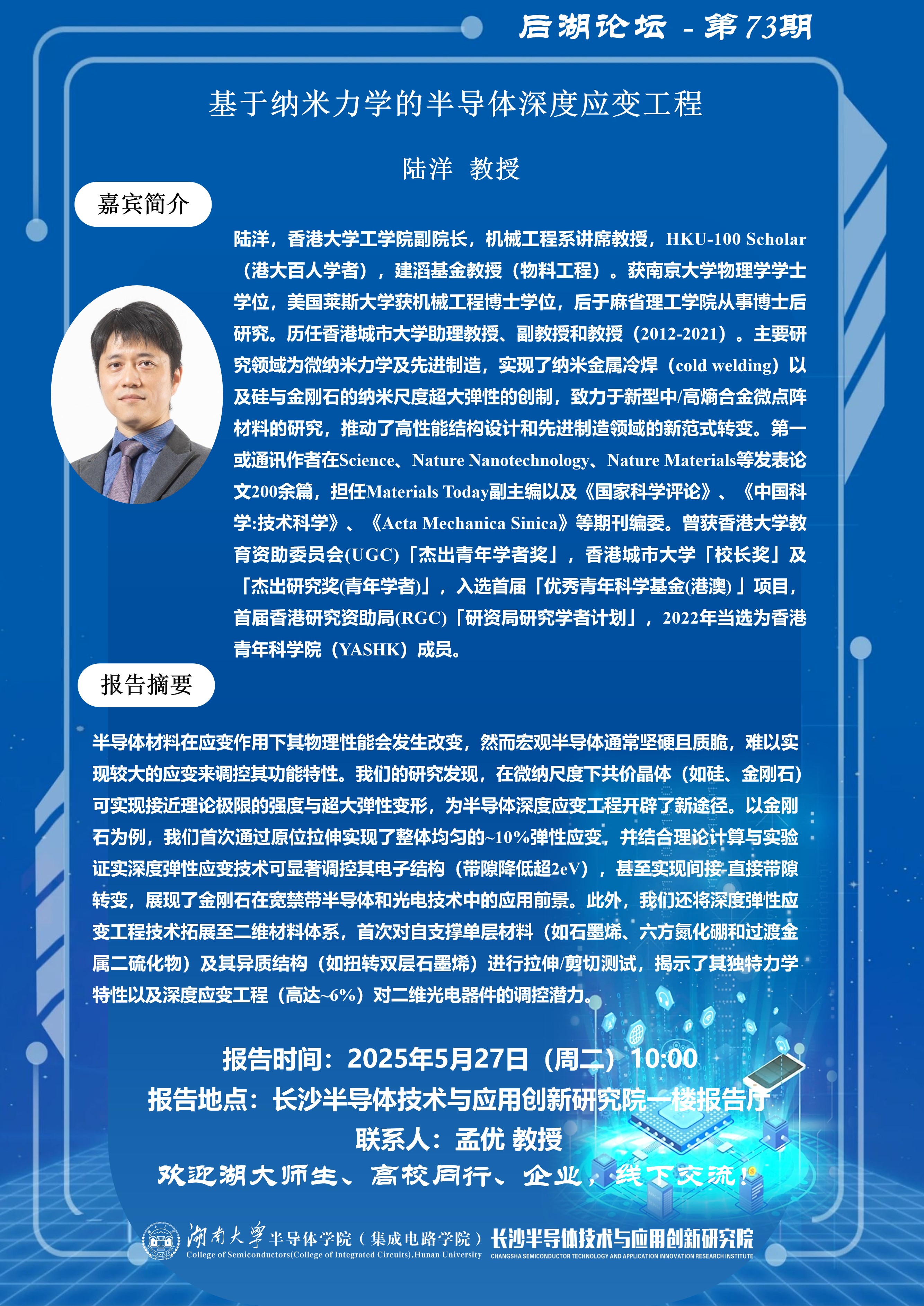 后湖论坛第73期:基于纳米力学的半导体深度应变工程