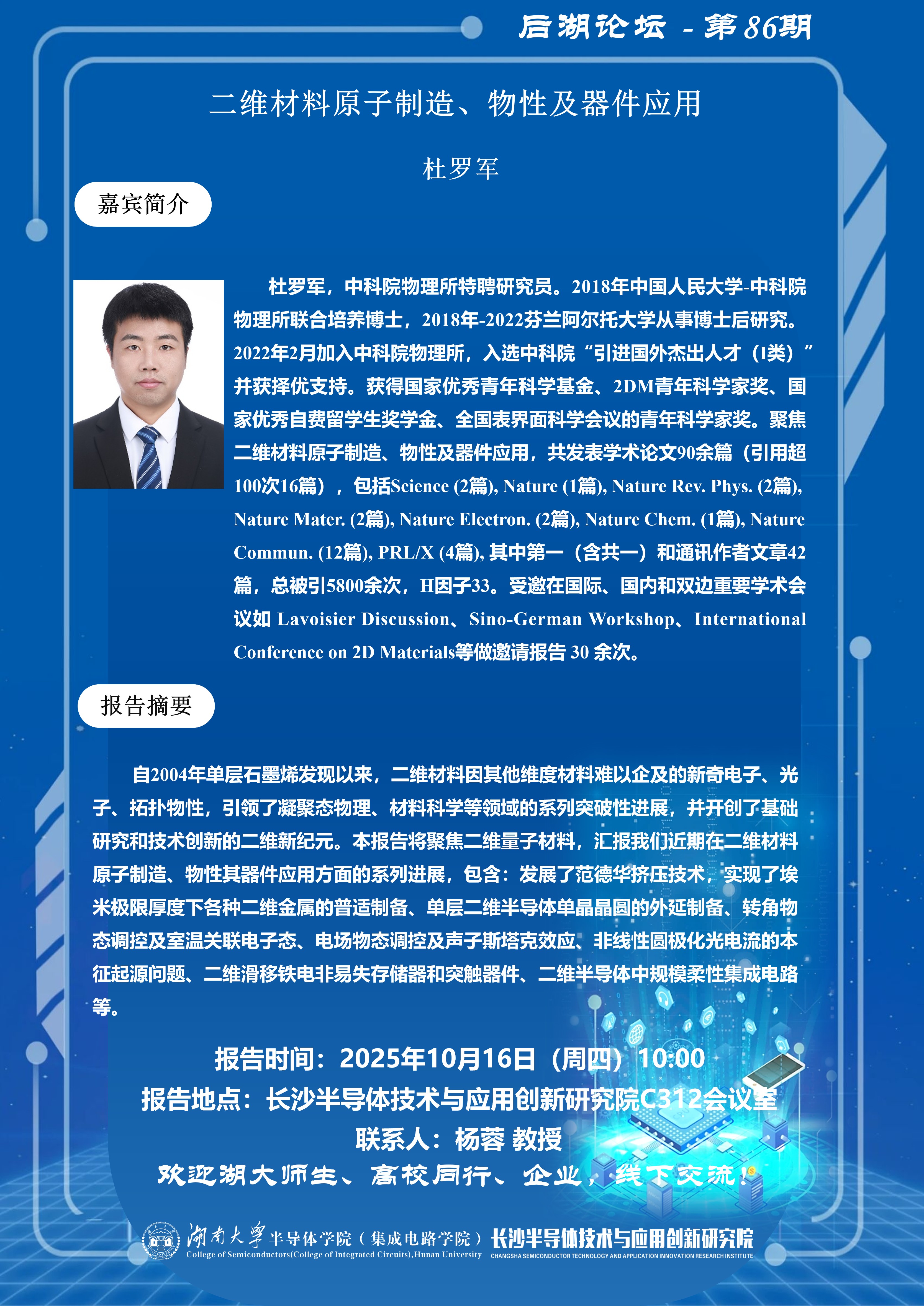后湖论坛第86期:二维材料原子制造、物性及器件应用